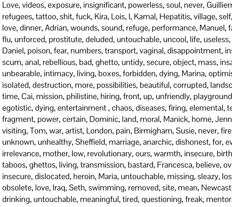 The spectacular actions with which Franko B meets the public using his body as a tool which is used as a canvas, sick or helpless, cut, washed, stretched or folded from suffering, violated, humiliated, naked or covered, the artist’s body becomes the social body that eliminates any separation between work and artist, subject and object, art and life.