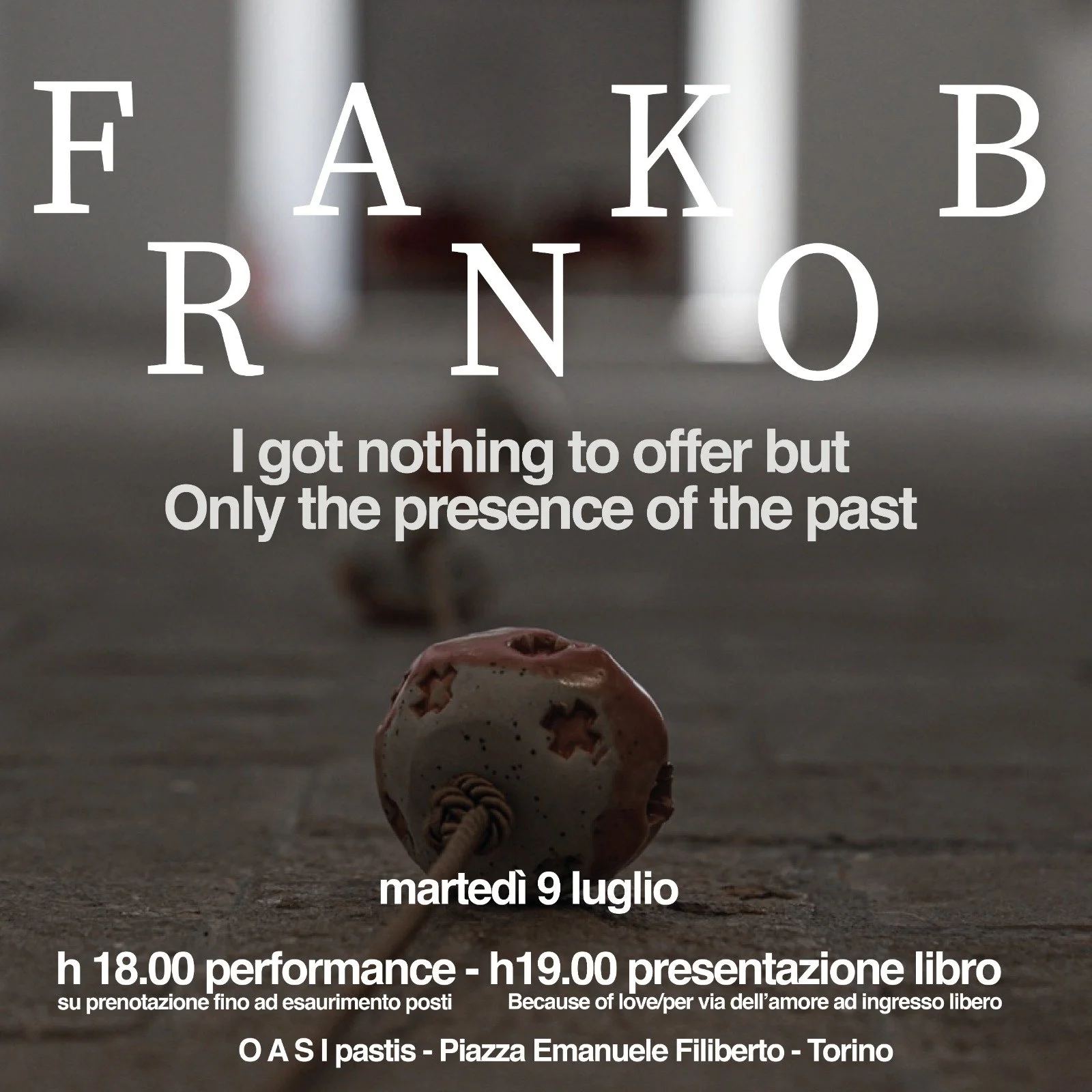 I have Nothing to Offer but the Presence of the Past - performance in Torino 2 Jul Written By Franco Bosisio Franko B presents his new performance. 9th July 2024, 1800. OASI Pastis, Torino Franco Bosisio