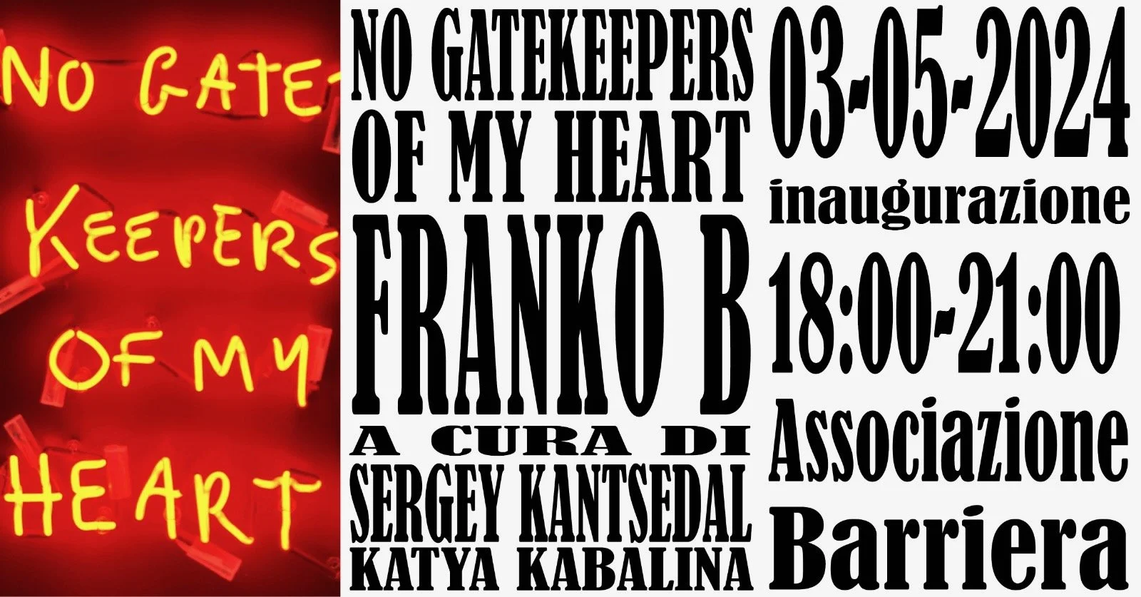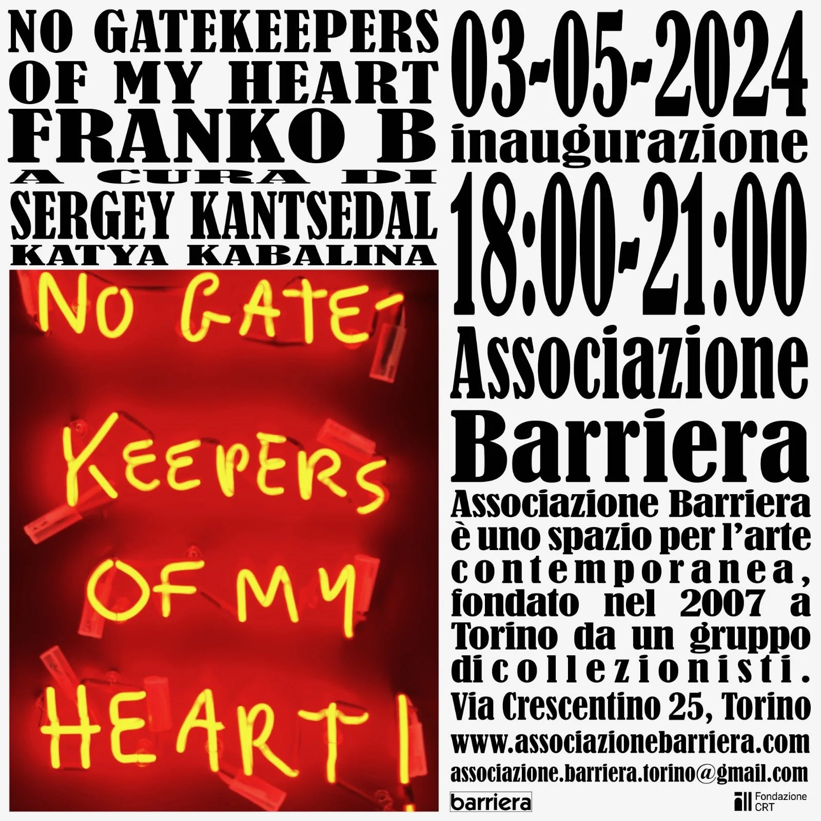 No Gatekeepers of my Heart - solo show in Torino 8 Apr Written By Franco Bosisio exhibition at Associazione Barriera, Torino. Opens 3rd May 2024associazionebarriera.com Franco Bosisio